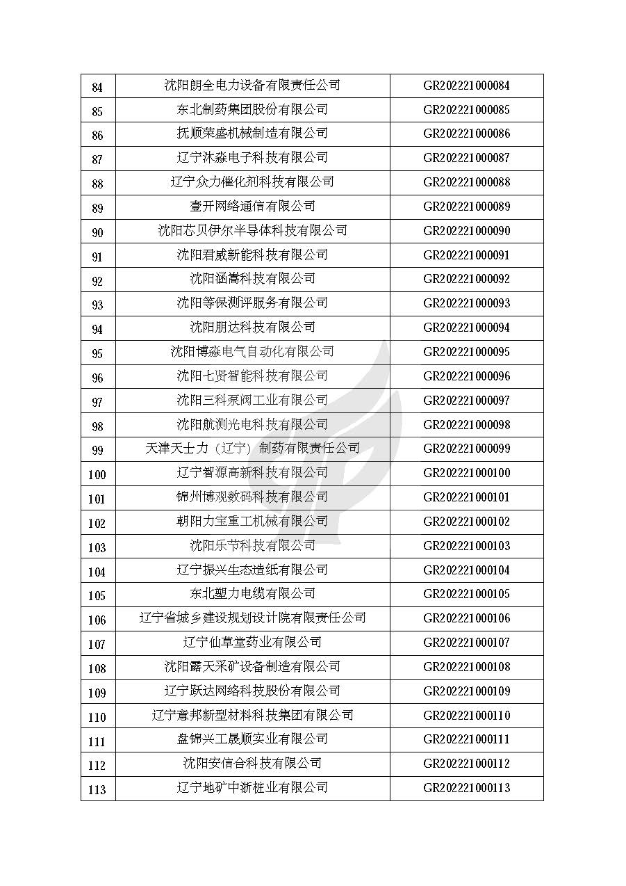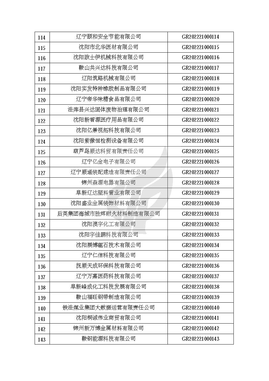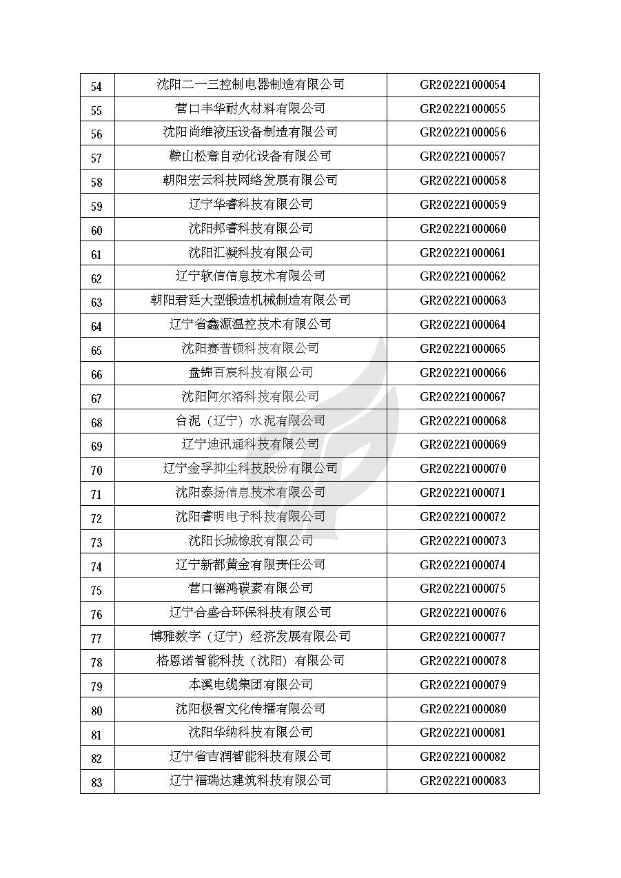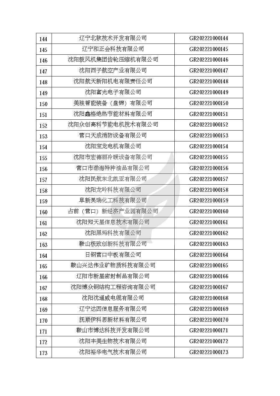 关于对辽宁省认定机构2022年认定的第一批高新技术企业进行备案的公告
