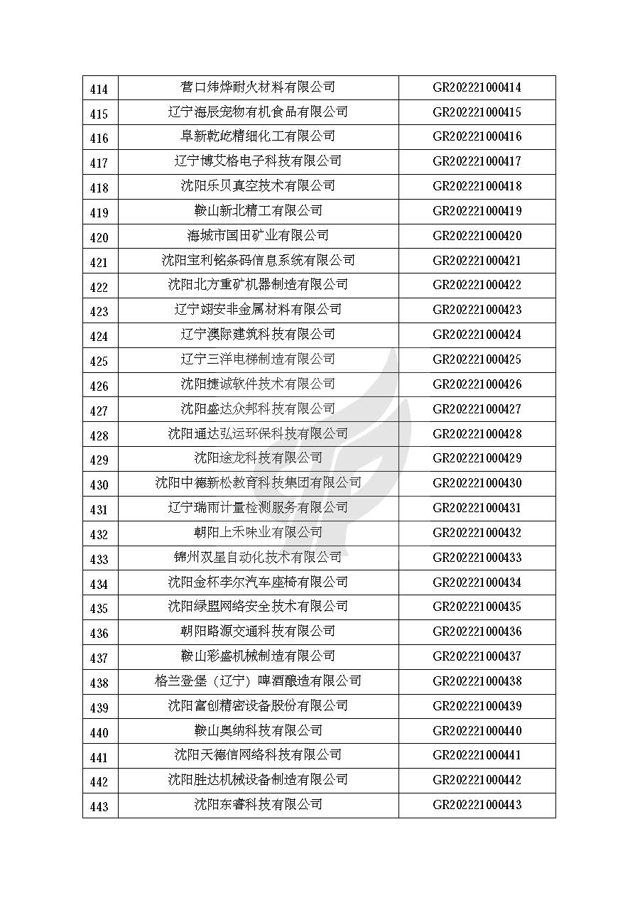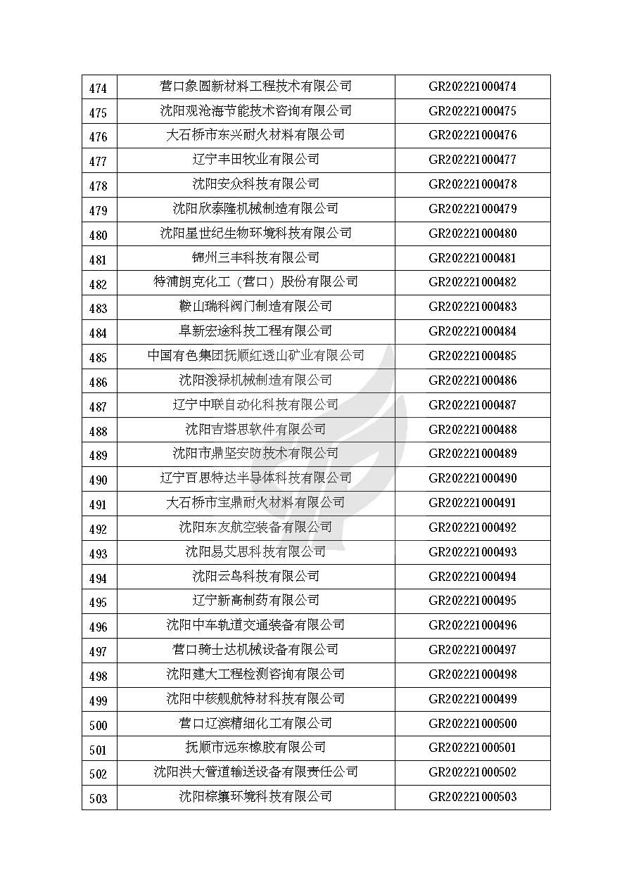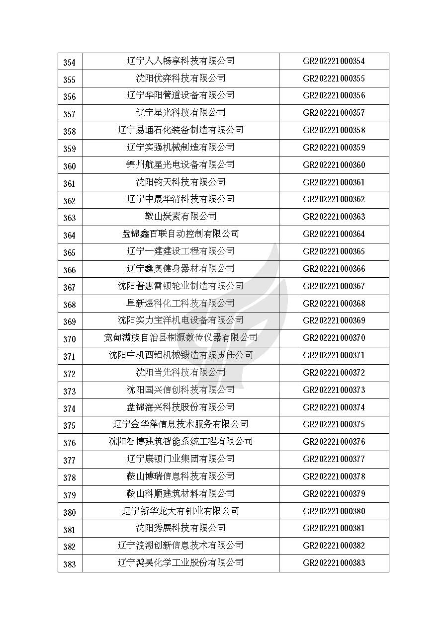关于对辽宁省认定机构2022年认定的第一批高新技术企业进行备案的公告