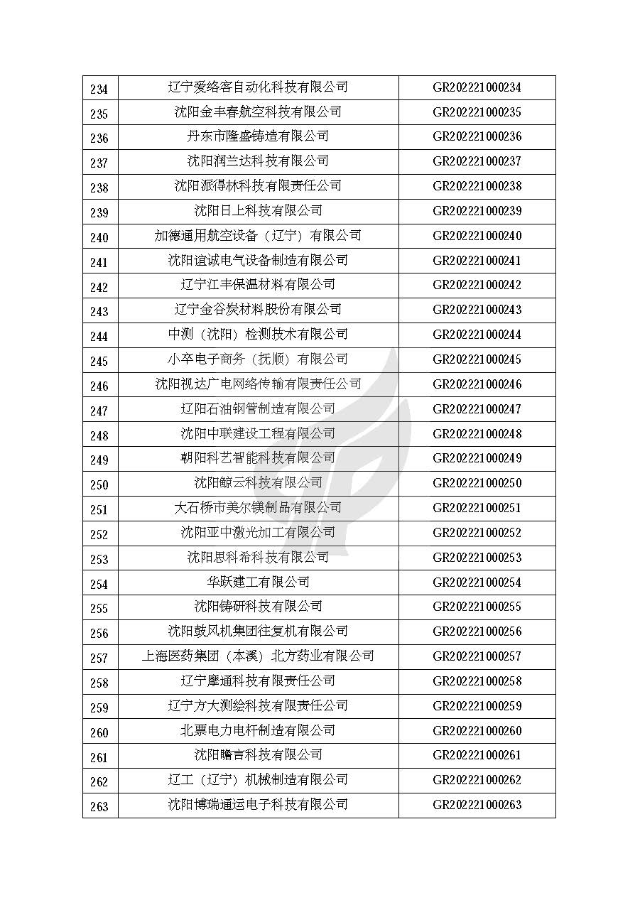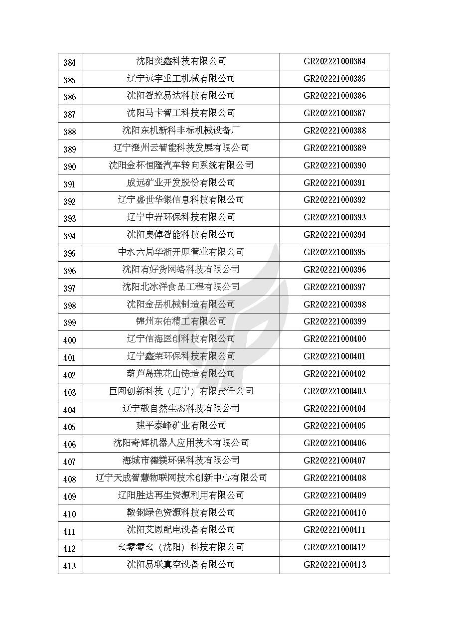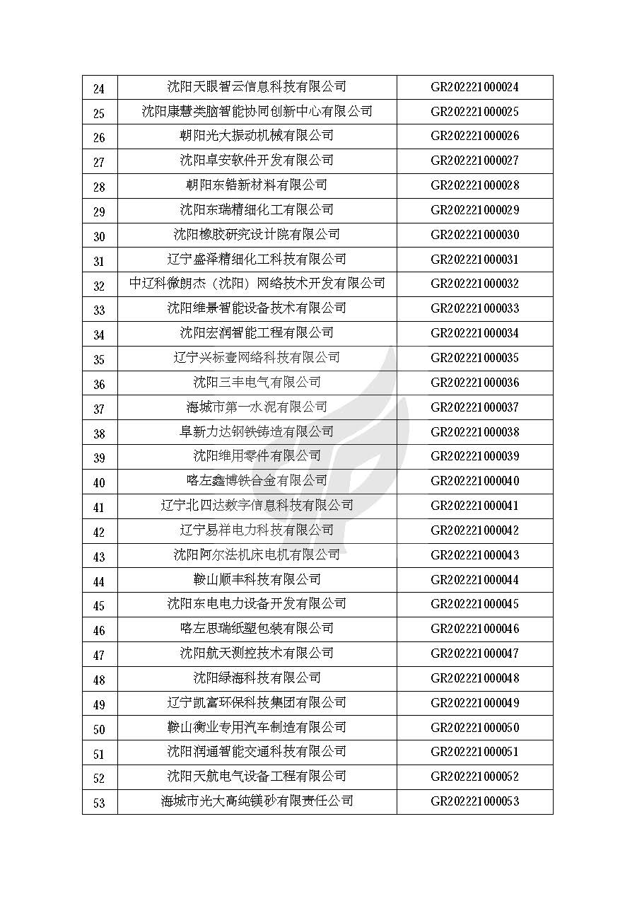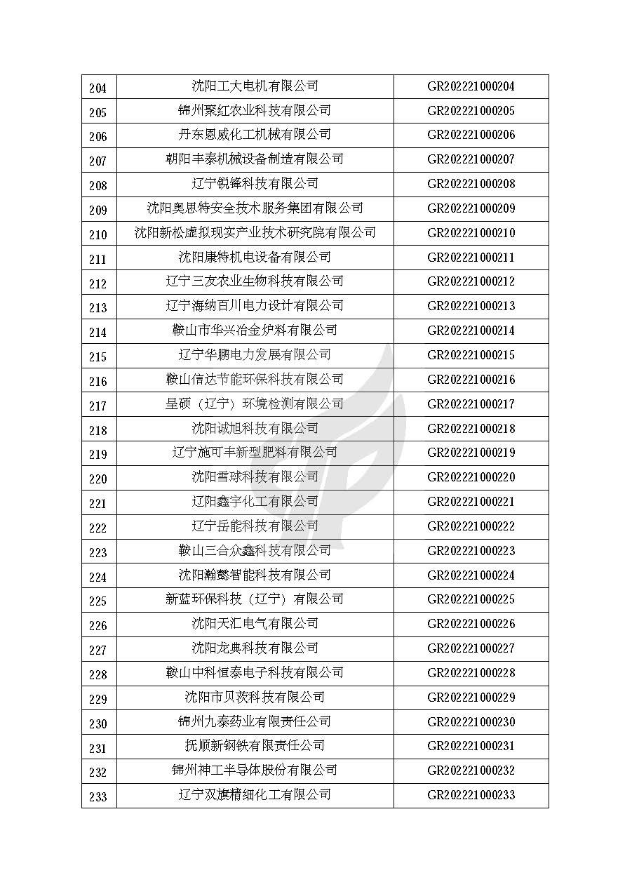 关于对辽宁省认定机构2022年认定的第一批高新技术企业进行备案的公告