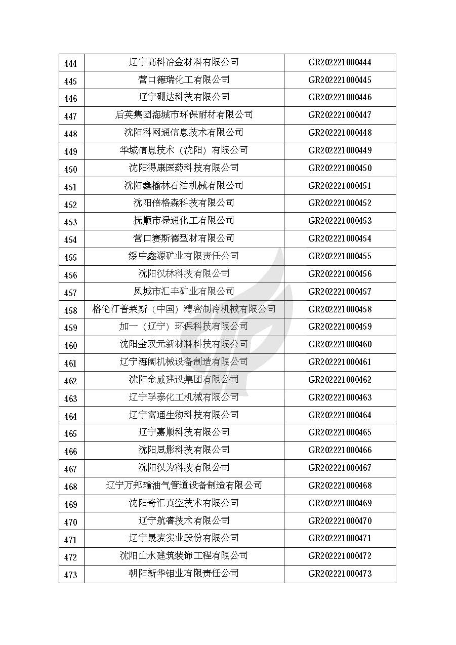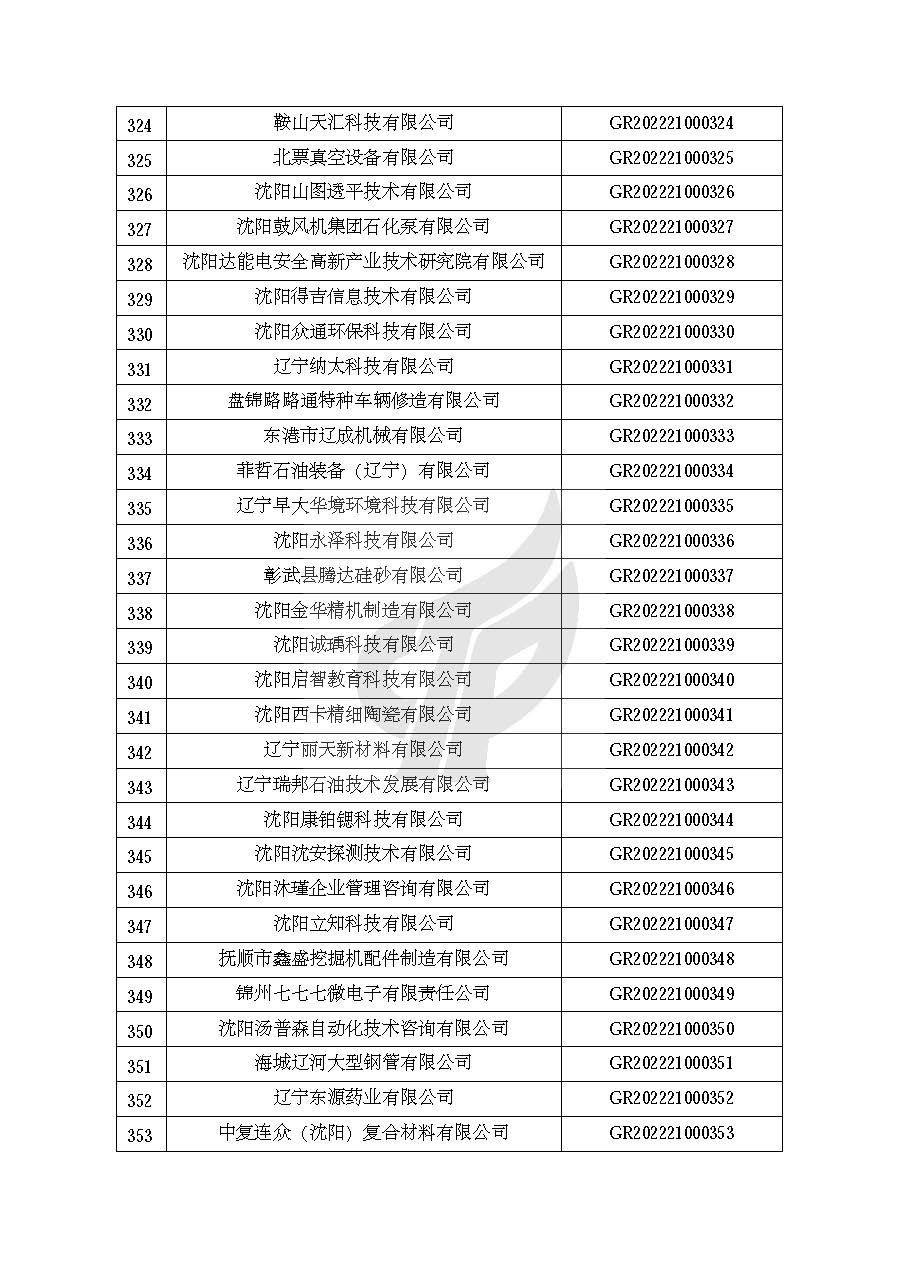 附件:辽宁省认定机构2022年认定的第一批高新技术企业备案名单