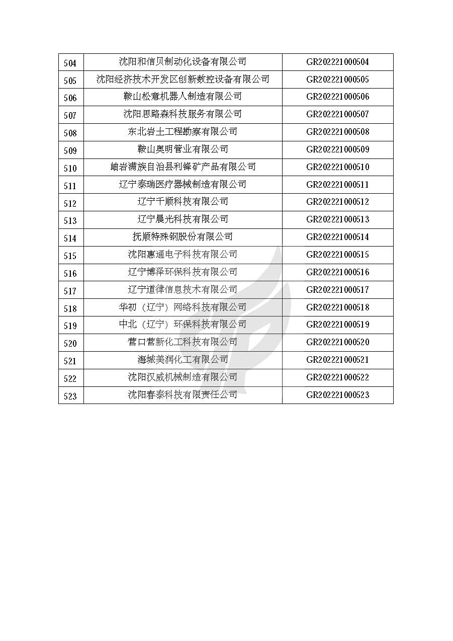 根据《高新技术企业认定管理办法》(国科发火〔2016〕32号)和《高新技术企业认定管理工作指引》(国科发火〔2016〕195号)有关规定,现对辽宁省认定机构2022年认定的第一批523家高新技术企业备案名单(详见附件)予以公告。
