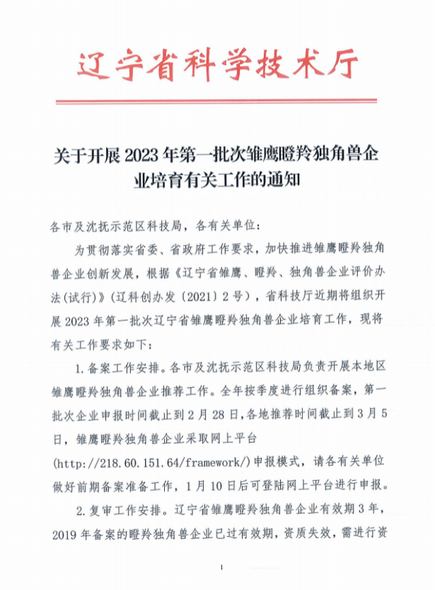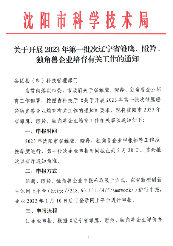 关于开展2023年第一批次雏鹰瞪羚独角兽企业培育有关工作的通知