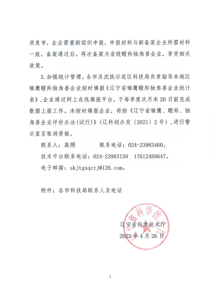 现将《关于开展2023年第二批次雏鹰瞪羚独角兽企业培育有关工作的通知》转发给你们,请组织企业申报,解答企业疑问,感谢支持!