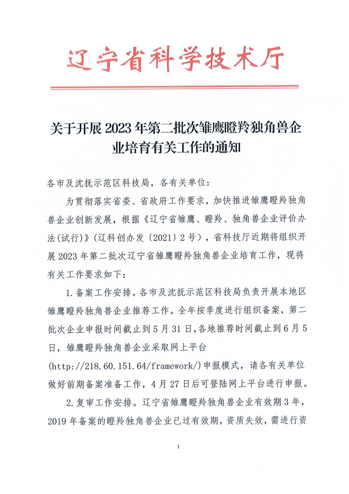 通知公告丨关于开展2023年第二批次雏鹰瞪羚独角兽企业培育有关工作的通知